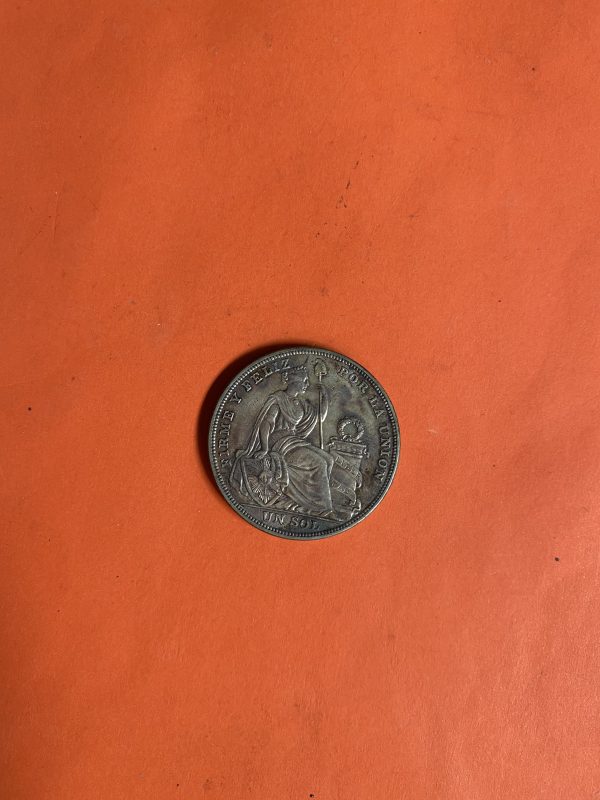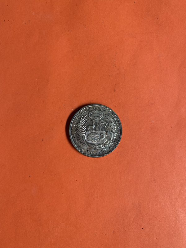 เหรียญเก่าเนื้อเงินประเทศ PERU สมัย FIRME Y FELIZ POR LA UNION ปี1924 มูลค่า UN SOL ตรงกับสมัย ร.6 ( พ.ศ.2467 )