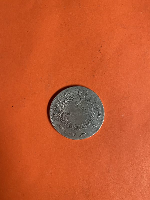 เหรียญเก่าเนื้อเงินประเทศ FRANCE สมัย BONAPARTE (Napoleon I ) ปี11-12(1802-1803) มูลค่า 5 Fance ตรงกับสมัย ร.1 พ.ศ.2346 ผิวดูเหมือน เนื้อโม่แป้งเดิม