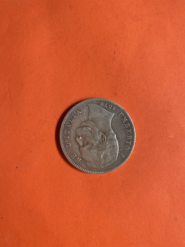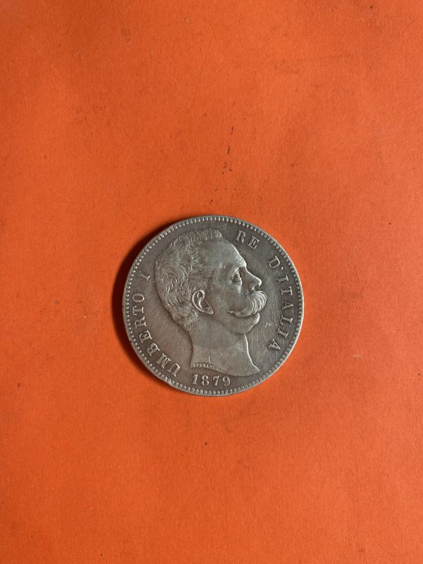 เหรียญเก่าเนื้อเงินประเทศ ITALIA สมัย พระเจ้า UMBERTO I ปี 1879 มูลค่า 5 Lire ตรงกับสมัย ร.5 (ปี2422)