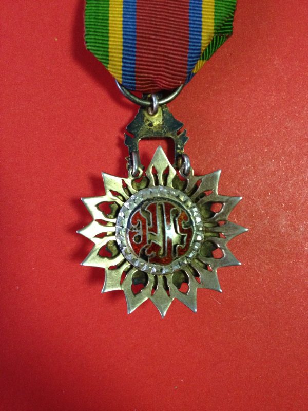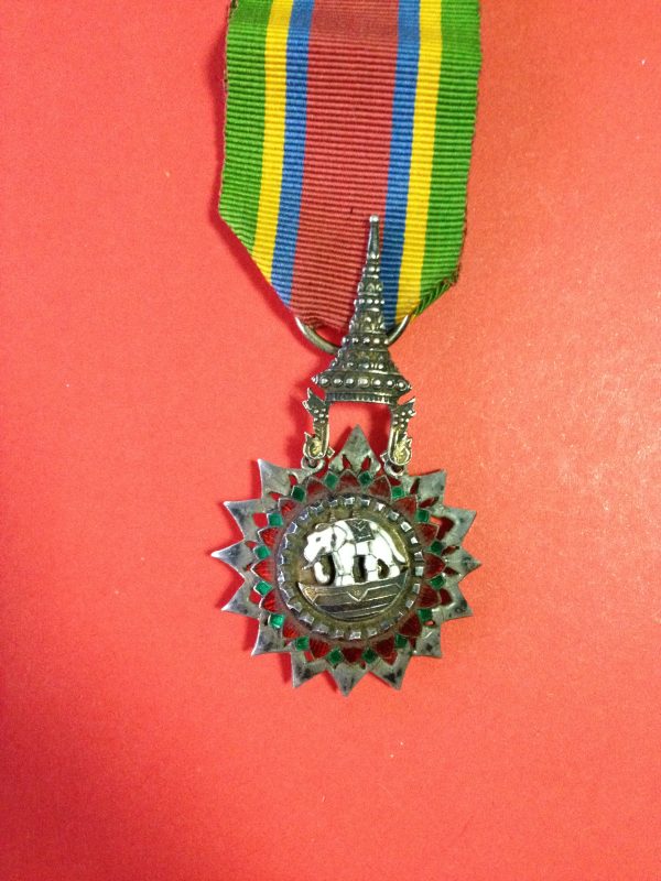 เหรียญเครื่องราช ร. 6 ช้างลงยาสวยงามพร้อมแถบแพร หลังมีตรา ม.ป.ร.ลงยาสีแดง