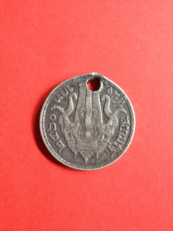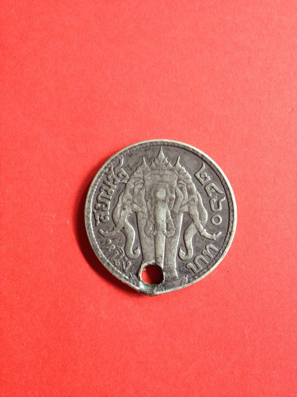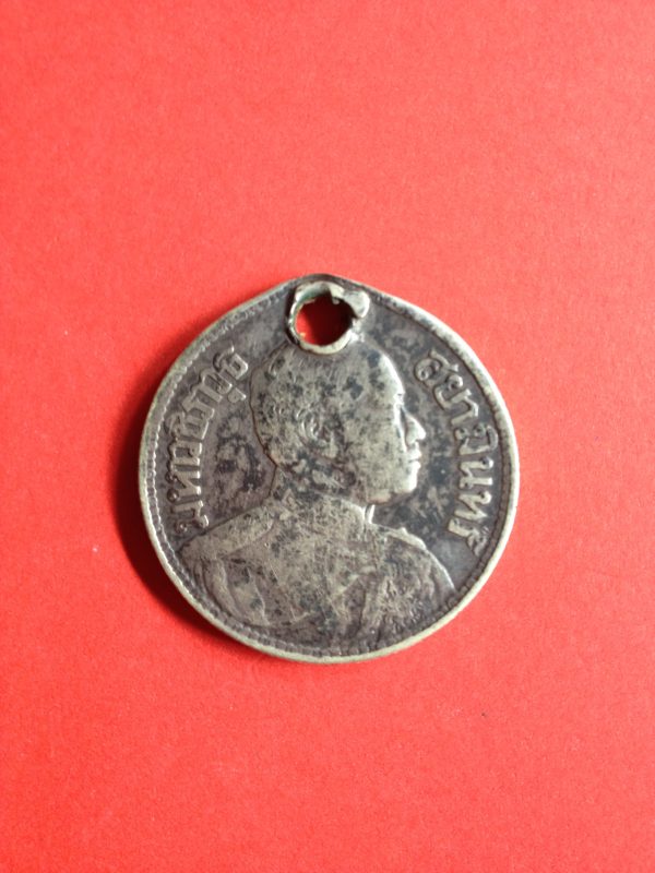 เหรียญเงินบาทหนึ่ง ร. 6 พ.ศ. 2460 สวยคมชัดมีรูเจาะสำหรับแขวน