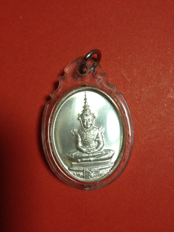 เหรียญเงินพระแก้วมรกตทรงเครื่องฤดูร้อนหลังพระราชศรัทธา สวยคมชัดเลี่ยมในกรอบพลาสติกพร้อมขึ้นคอ