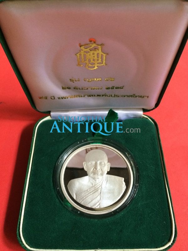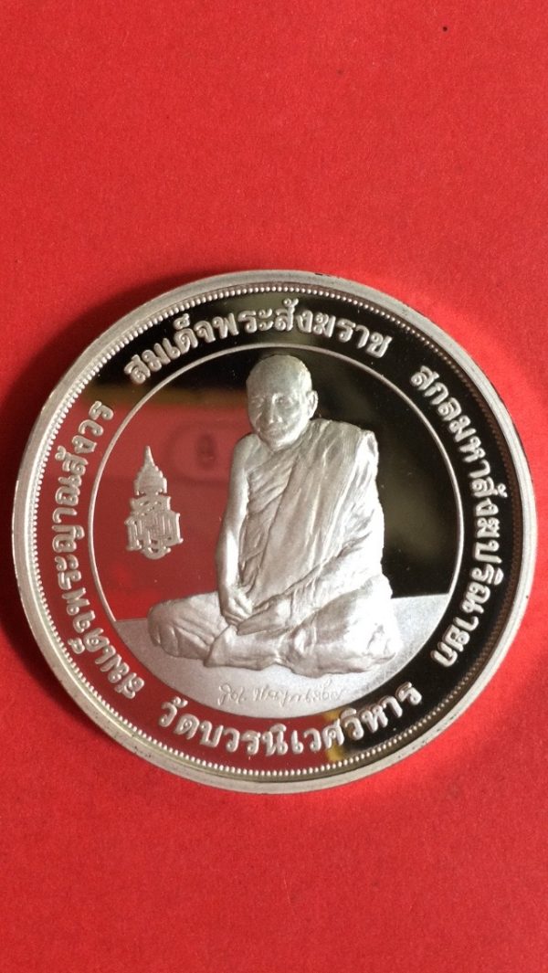 เหรียญเงินพ่นทรายขัดเงาสมเด็จพระญาณสังวร สมเด็จพระสังฆราช รุ่น ญสส.82 ปี2538 โดย Perth Mint นำ้หนักเงิน 31.88 กรัม สผ.4 ซม.