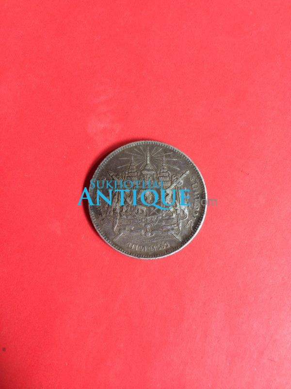 เหรียญเงินหนึ่งบาท ร.5 ไม่มี ร.ศ.แต่มียันต์เขียนอยู่ด้านหัว