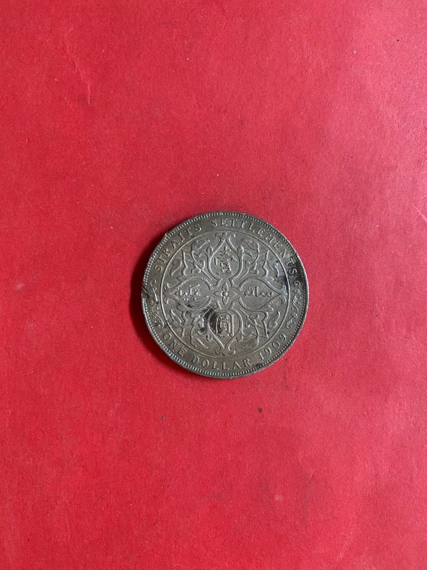 เหรียญเงินเก่ากลุ่มประเทศ STRITS SETTLEMENTS พระเจ้าเอ็ดเวิดร์ที่ 7 ONE DOLLAR ปี 1909 สภาพคมชัดสวยงาม