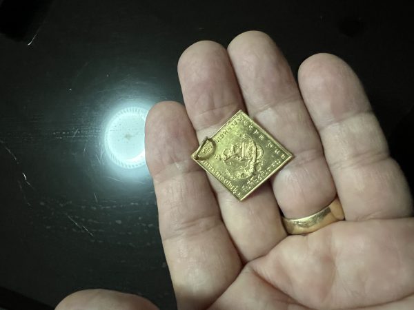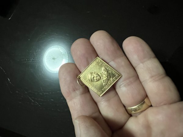 เหรียญเนื้อทองคำสี่เหลี่ยมข้าวหลามตัด กรมหลวงชุมพร สวยงามคมชัด