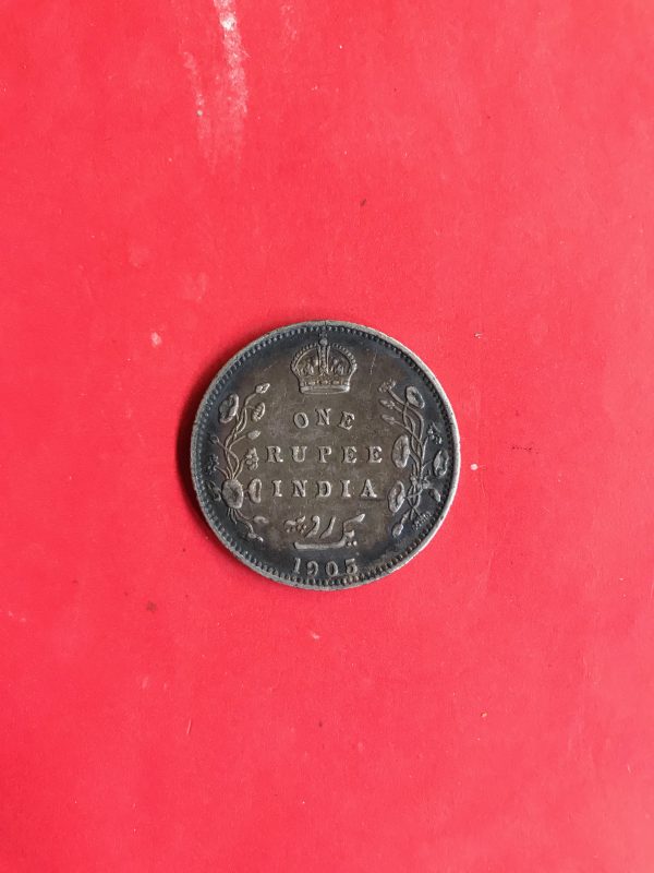 เหรียญเนื้อเงินเก่าพระเจ้า EDWARD VII ประเทศอินเดีย ONE RUPEE ปี ค.ศ.1903 มีผิวไฟสวยเก่าเดิม