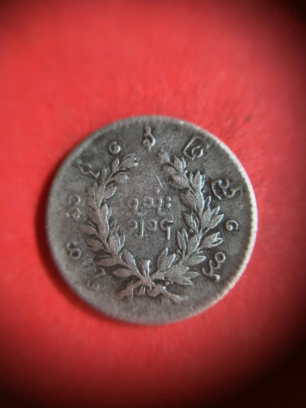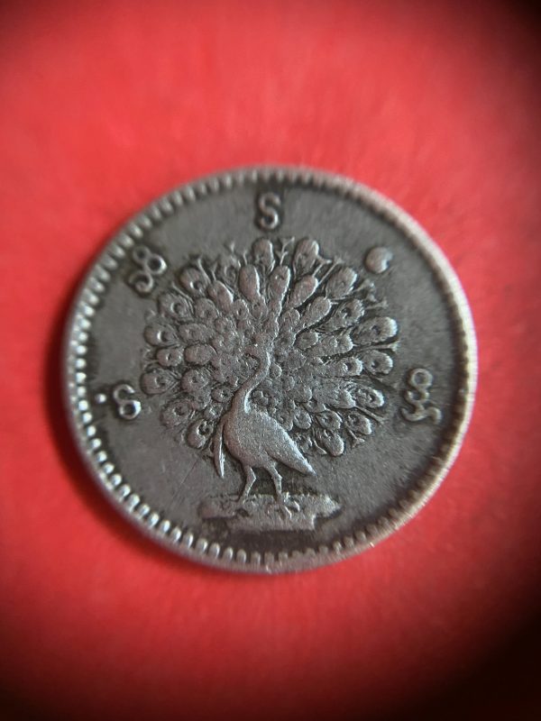 เหรียญเนื้อเงิน Rupee ของพม่าตรานกยูงเล็ก ปี1214 สภาพสวยงามคมชัดมากๆ