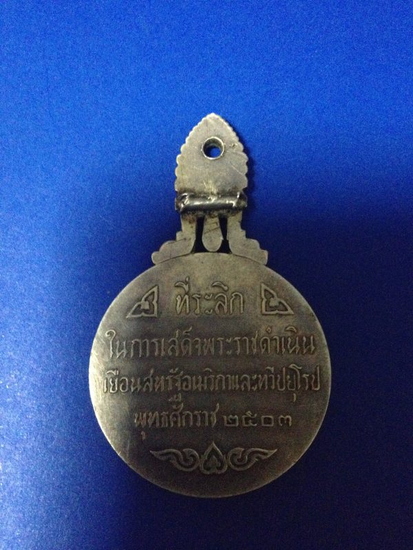 เหรียญเสด็จพระราชดำเนินเยือนสหรัฐอเมริกาและทวีปยุโรป ร.9 เนื้อเงินพิมพ์ใหญ่ ปี 2503 สวยชัดมาก (มีรูเจาะตรงกลาง)