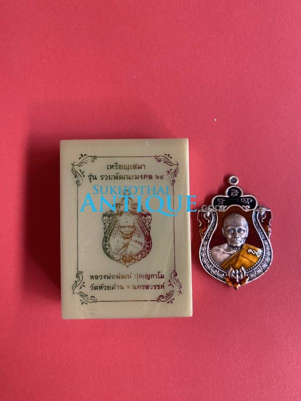 เหรียญเสมาหลวงพ่อพัฒน์ วัดห้วยด้วน อ.หนองบัว รุ่นรวยพัฒนะมงคล ปี2564 เนื้อทองแดงลงยา สวยพร้อมกล่อง หมายเลข891