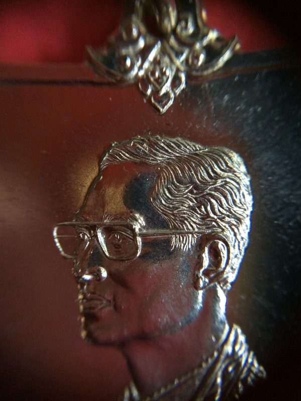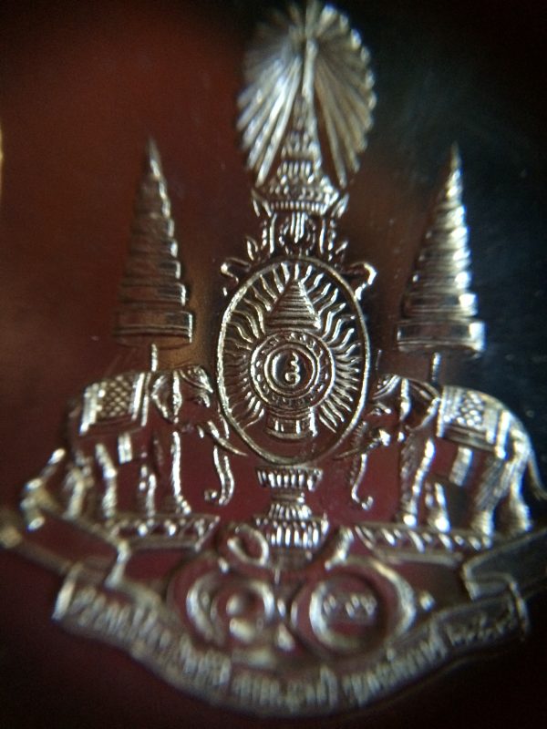 เหรียญในหลวงฉลองสิริราชสมบัติ ครบ รอบ 50 ปี พ.ศ. 2539 เนื้ออัลปาก้า หลังตรากาญจนา
