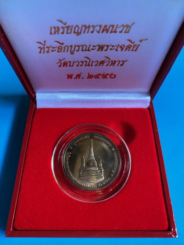 เหรียญในหลวงทรงผนวชปี 2550 เนื้อนวะ รุ่น บูระเจดีย์ วัดบวร อยู่ในกล่องกำมะหยี่สีแดงสวยงาม เหรียญที่ 2