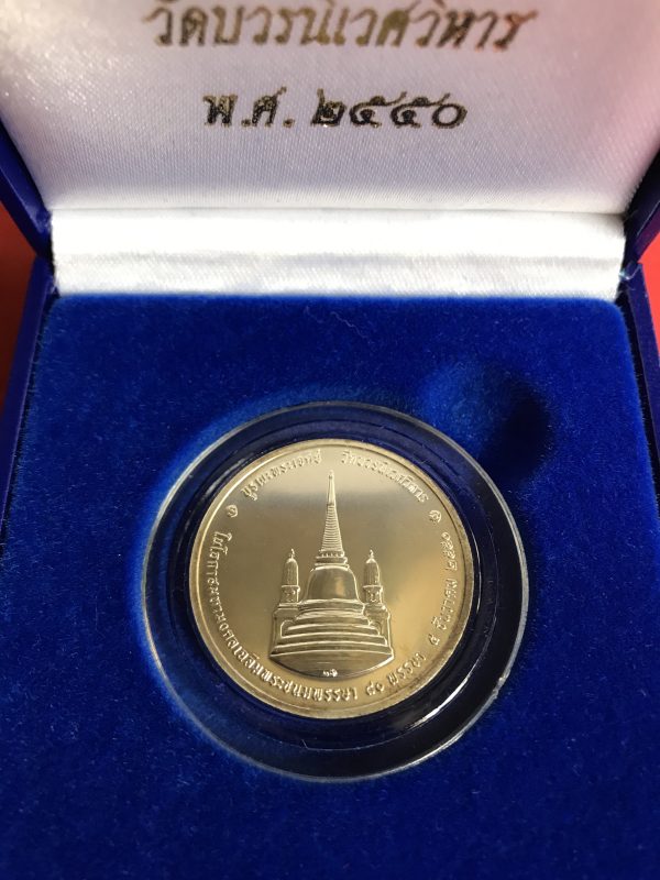 เหรียญในหลวงทรงผนวชปี 2550 เนื้อเงินรุ่น บูระเจดีย์ วัดบวร เหรียญที่ 1