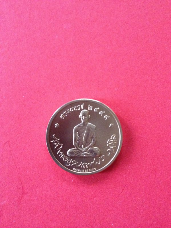 เหรียญในหลวงทรงผนวชปี 2551 เนื้อเงิน (บล็อกนอก)ตอกโค๊ตหมายเลขที่ขอบเหรียญ