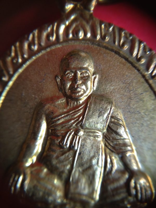 เหรียญใบพุทราหลวงปูู่เอมวัดคลองโป่ง ศรีสำโรง รุ่น5 ปี2546 เนื้อทองแดงกะไหล่ทองระดับแชมป์สวยกลิ๊ป สวยงามมากๆ องค์ที่2