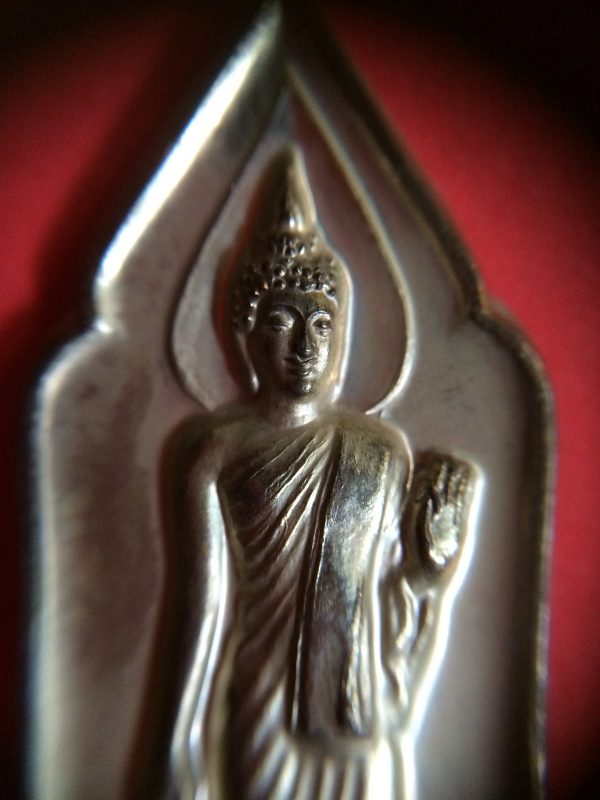 องค์พระมีหน้าตาสวยชัดเจน ประกอบด้วยมวลสารจิตรดา ขนาดประมาณ 35X23X6 มิลลิเมตร ปลุกเสกวันที่ 28 กันยายน 2516