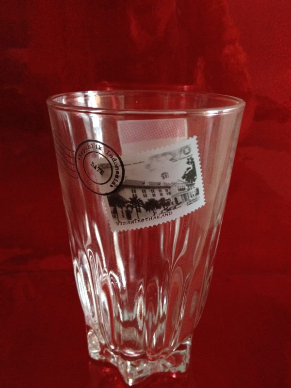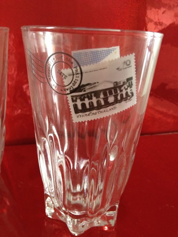 แก้วน้ำกินก้นจีบของไปรษณีย์ มีตราธงชาติ เออีซี