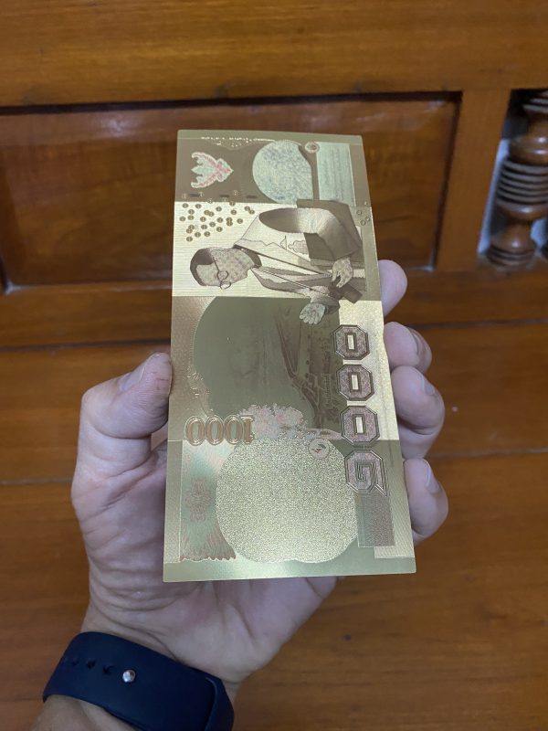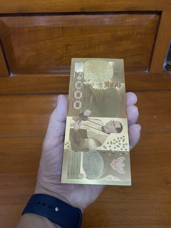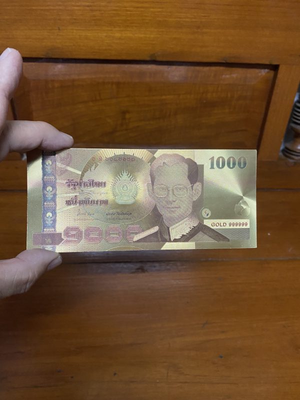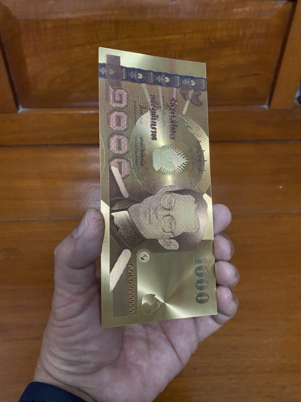 แผ่นธนบัตรทองคำที่ระลึก เศรษฐกิจพอเพียงแบบพอมีพอกิน เขื่อนป่าสักชลสิธิ์ ใหลวงร. 9 หมายเลข 0 ฉ 0086633 (ไม่มีกล่อง)