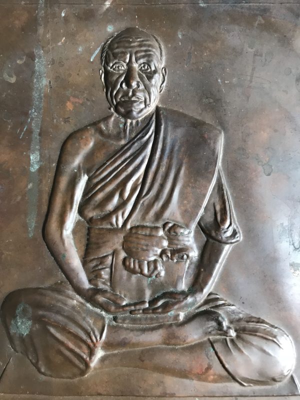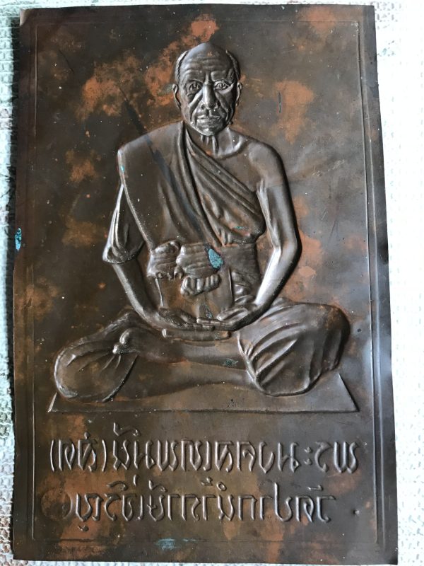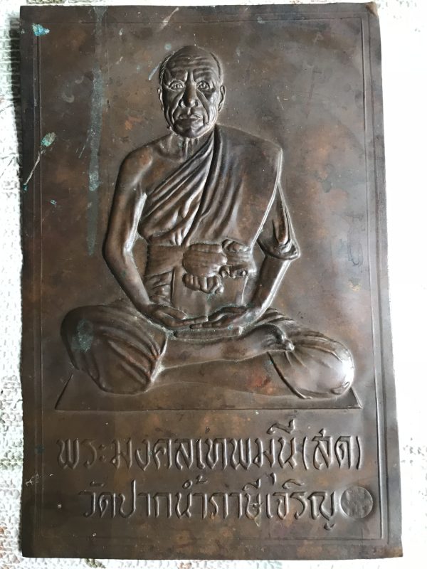 แผ่นปั้มทองเหลือง รูปหลวงพ่อสด วัดปากนํ้าภาษีเจริญ ตอกโค๊ตมุมล่างซ้าย