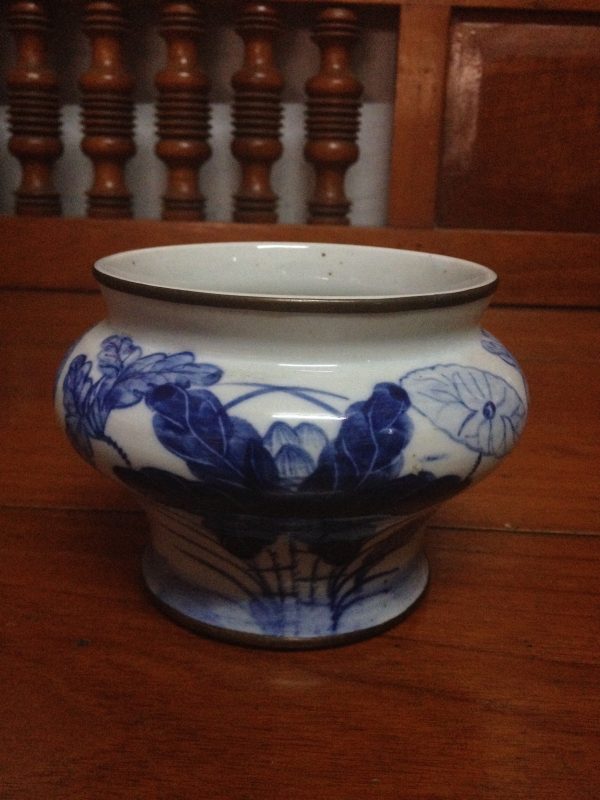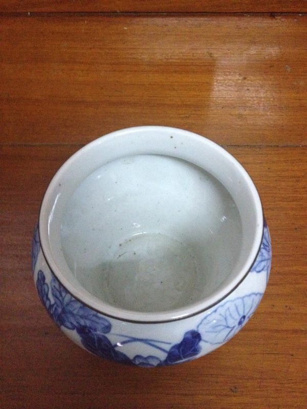 โถเป็ดกอบัวรัตนโกสินทร์สีขาวฟ้าใบเล็ก