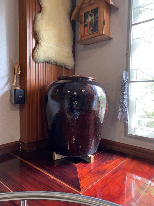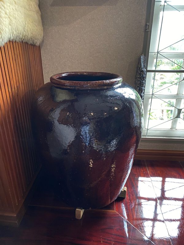 โอ่งเซี่ยงไฮ้โบราณสีนำ้ตาลไหม้อายุเกิน 100 ปีขึ้น นำเข้าจากต่างประเทศ มีตราภาษาจีนตอกประทับอยู่ปากโอ่งหายากมากๆ