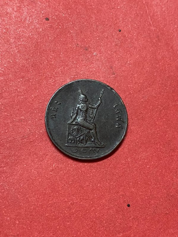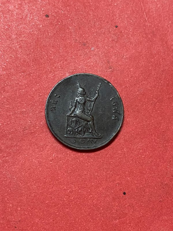 เหรียญทองแดงหนึ่งโสฬส ร.ศ.109 สมัยรัชกาลที่ 5 หน้าตรงพระบรมรูป – พระสยามเทวาธิราช คมชัดสภาพผิวเดิมชัดมากๆ