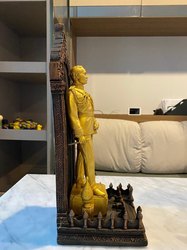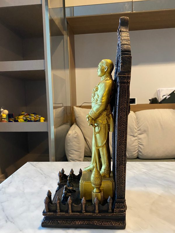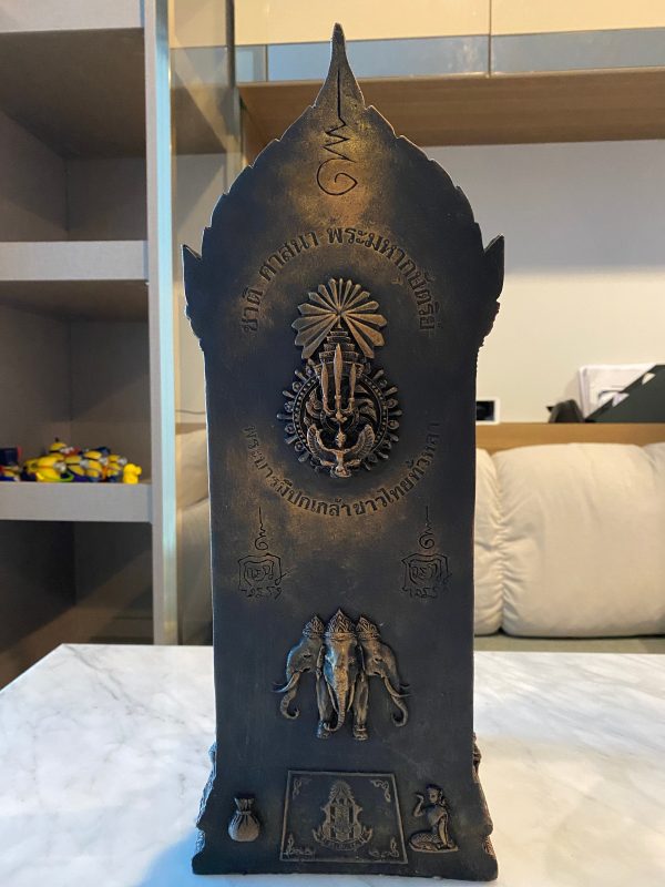 องค์หล่อเสด็จพ่อร.5 ด้านหลังเป็นตราครุฑใต้และ ช้างสามเศียรพระบารมีปกเกล้า