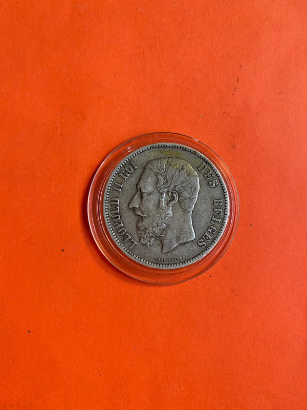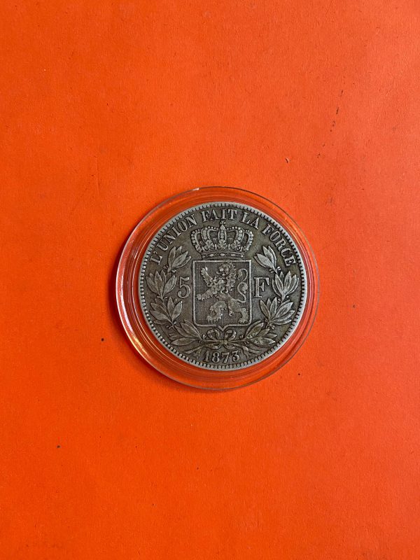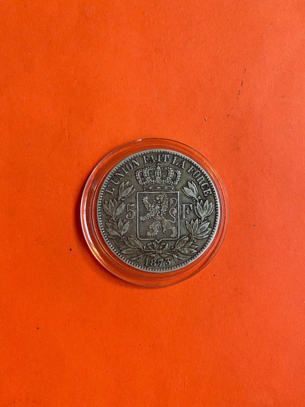 เหรียญเก่าเนื้อเงินประเทศเบลเยี่ยมสมัยพระเจ้า LEOPOLD II ROI ปี ค.ศ.1873 มูลค่า 5 France ตรงสมัย ร.5 พ.ศ.2416