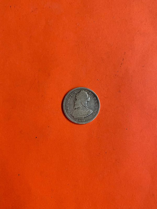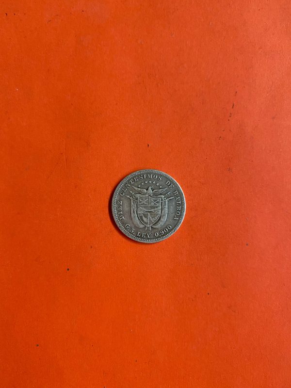 เหรียญเก่าเนื้อเงินประเทศ PANAMA สมัย REPUBLICA DE PANAMA ปี ค.ศ.1904 มูลค่า 5 LEY ตรงกับสมัย ร.5 พ.ศ.2447