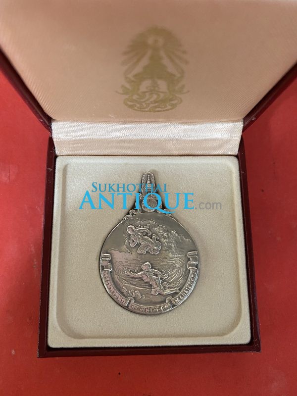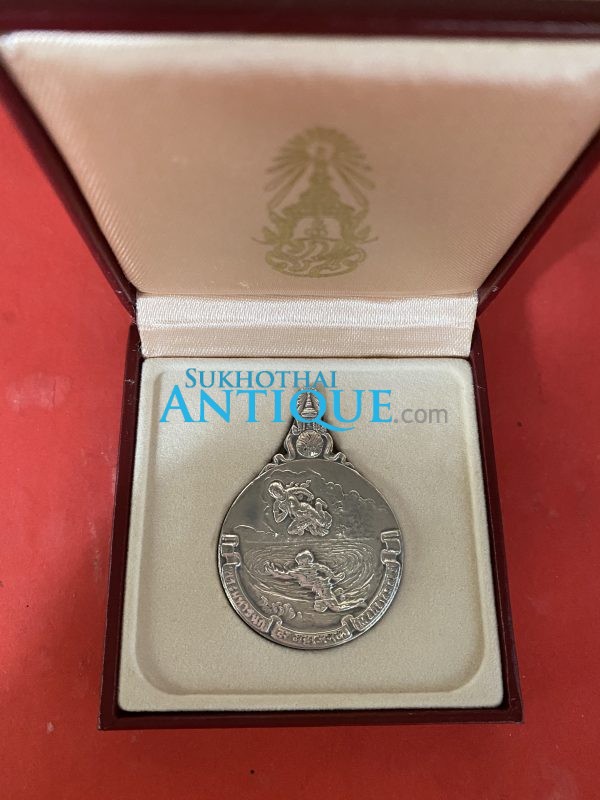 เหรียญพระมหาชนกเนื้อเงินพิมพ์ใหญ่พร้อมกล่องและหนังสือเล่มใหญ่ปกแข็งสีแดง ชุดที่ 3
