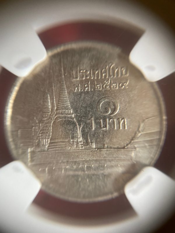 เหรียญหนึ่งบาทเล็กรุ่นแรกหายากปี 2529 เนื้อนิเกิล ช่่อฟ้าสั้น ส่งคัดเกรด