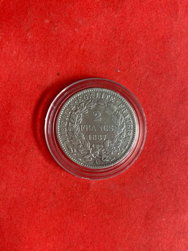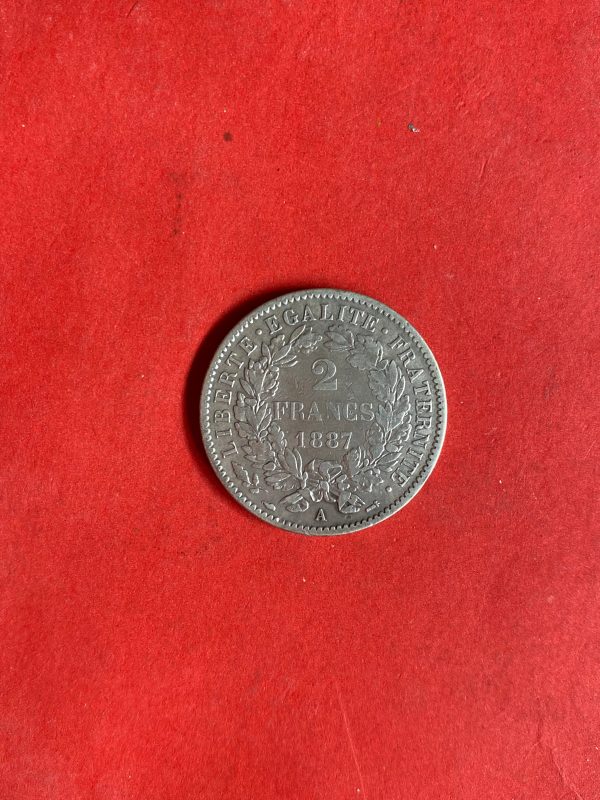 เหรียญเก่าเนื้อเงินประเทศ FRANCE สมัย THE THIRD REPUBLIC ปีค.ศ.1887 มูลค่า 2 Fance ตรงกับสมัย ร.5 พ.ศ.2430 สวยเดิม