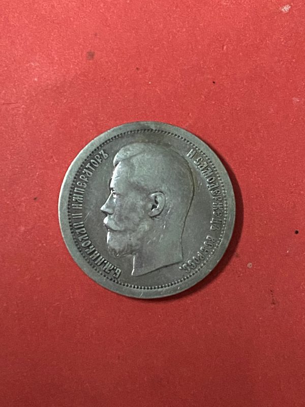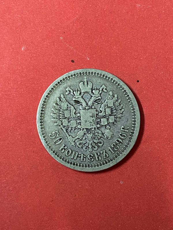 เหรียญเก่าเนื้อเงินประเทศ RUSSIA สมัยพระเจ้าซาร์นิโคลัสที่ 2 ราคา 50 Kopeks ปี 1896 ตรงกับ พ.ศ.2439 พระสหายรัชกาล 5